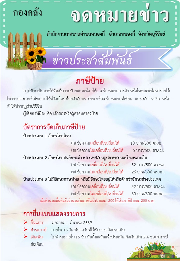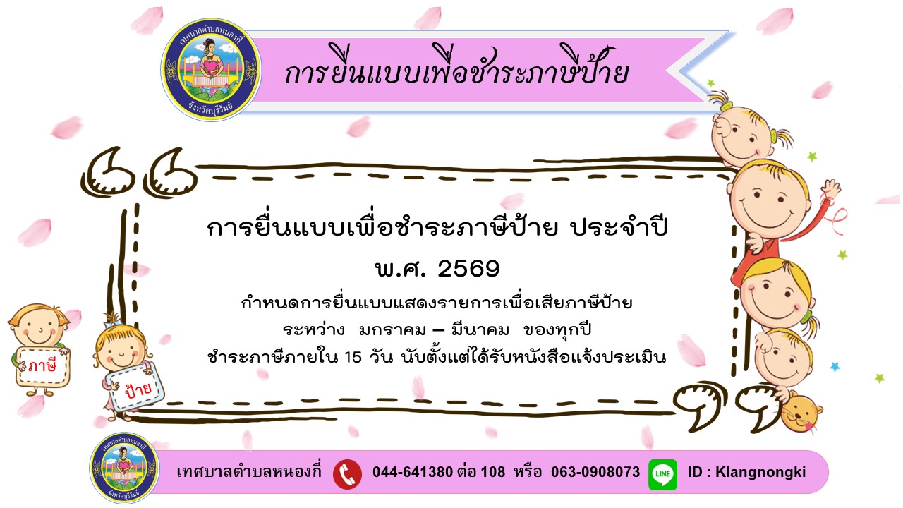 ขอความร่วมมือชำระภาษีตรงเวลา เพื่อพัฒนาท้องถิ่นของเราน่าอยู่ยิ่งขึ้น