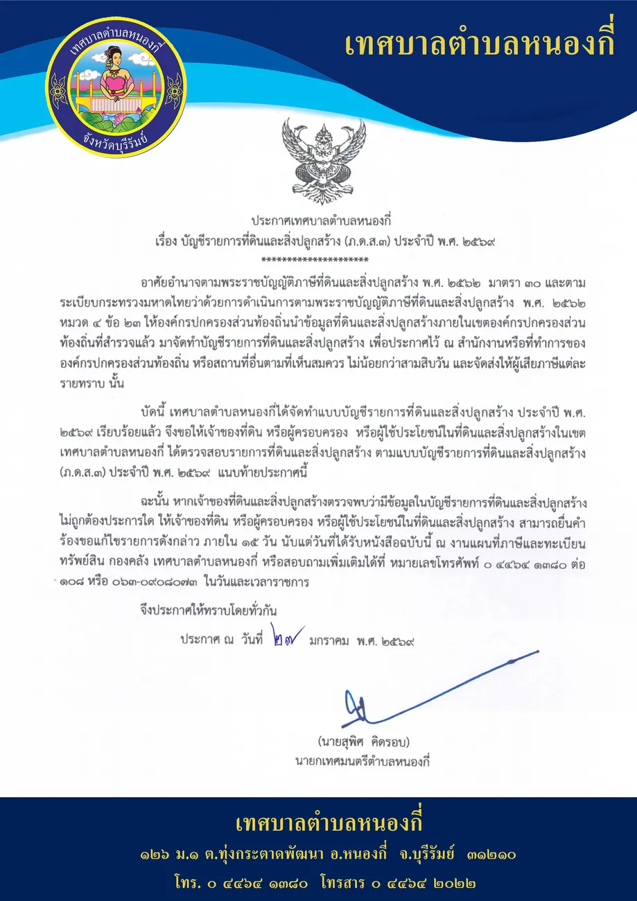 ประกาศ เรื่อง การเปลี่ยนแปลงคำชี้แจงงบประมาณรายจ่ายประจำปี 2569 ครั้งที่ 1/2569